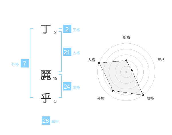 丁 麗乎さんの総格は26画の2点!