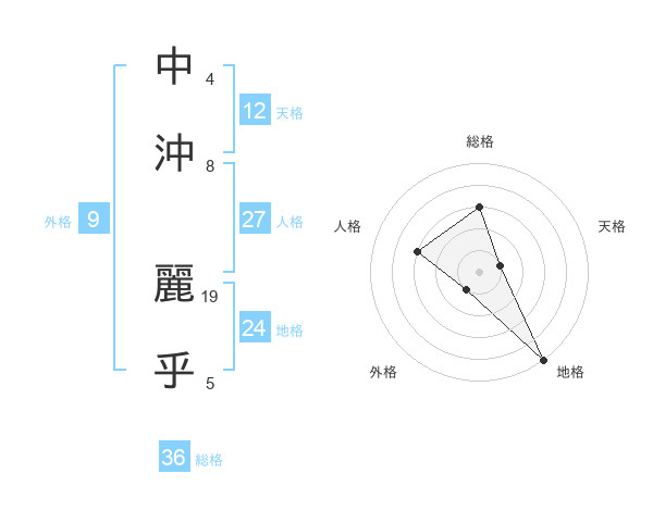 中沖 麗乎さんを姓名の画数から五運を鑑定