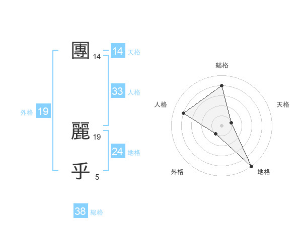 團 麗乎さんの総格は38画の4点!
