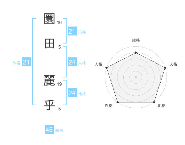 圜田 麗乎さんの外格は21画の5点!