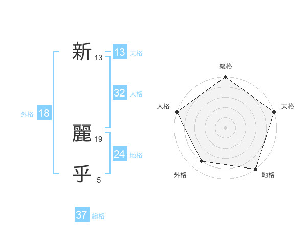新 麗乎さんの総格は37画の5点!
