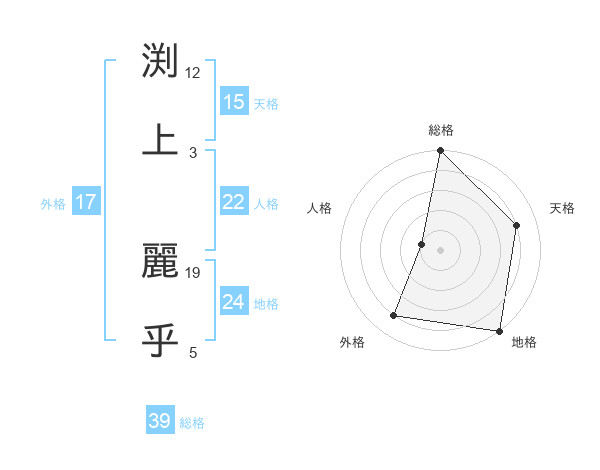 渕上 麗乎さんの総格は39画の5点!