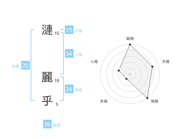 漣 麗乎さんの外格は20画の1点!