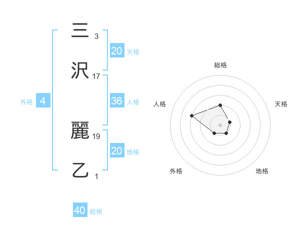 三沢 麗乙さんの天格は20画の1点!