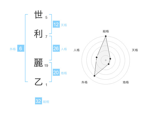 世利 麗乙さんを姓名の画数から五運を鑑定