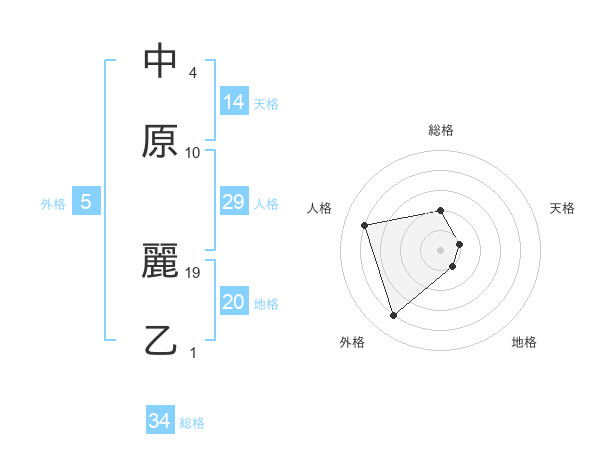 中原 麗乙さんを姓名の画数から五運を鑑定