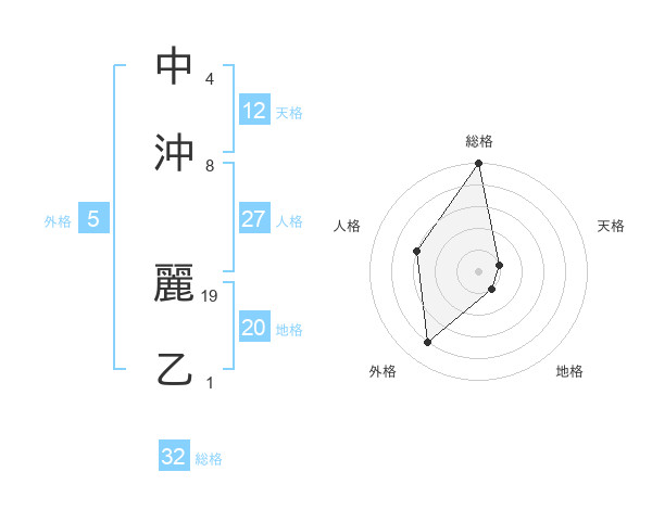 中沖 麗乙さんを姓名の画数から五運を鑑定