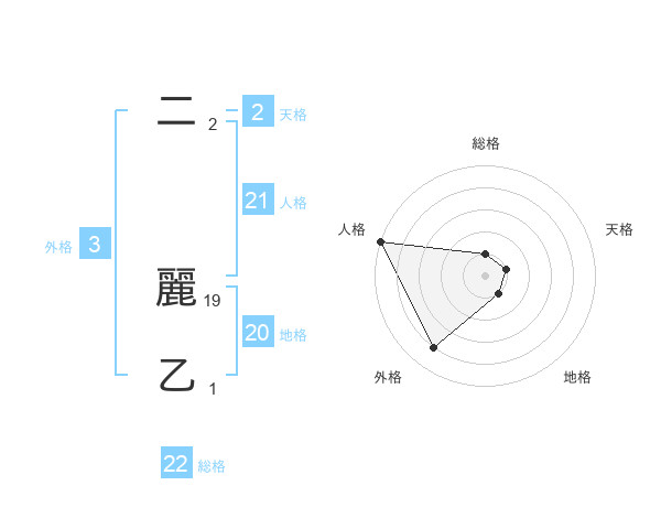 二 麗乙さんの地格は20画の1点!