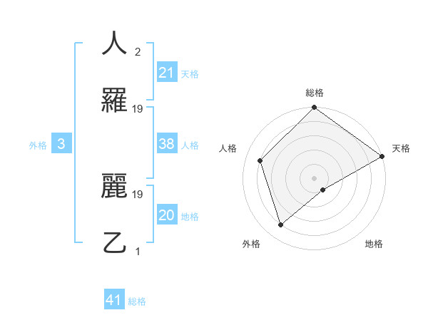 人羅 麗乙さんの人格は38画の4点!