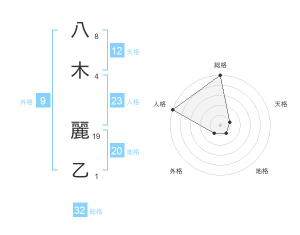 八木 麗乙さんの総格は32画の5点!