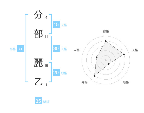 分部 麗乙さんを姓名の画数から五運を鑑定