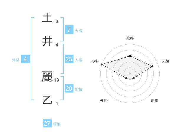 土井 麗乙さんを姓名の画数から五運を鑑定