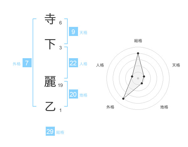 寺下 麗乙さんを姓名の画数から五運を鑑定