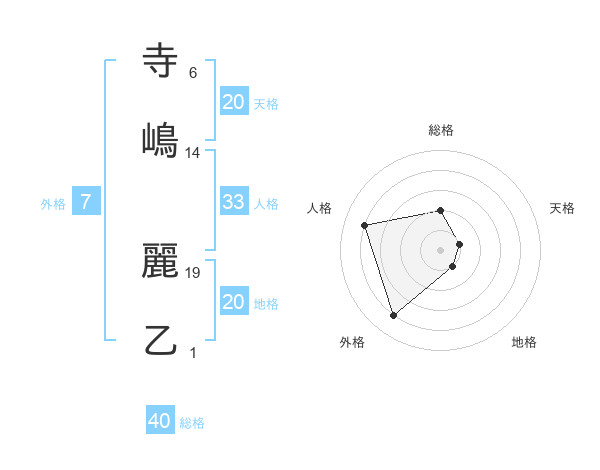 寺嶋 麗乙さんを姓名の画数から五運を鑑定