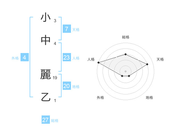 小中 麗乙さんを姓名の画数から五運を鑑定