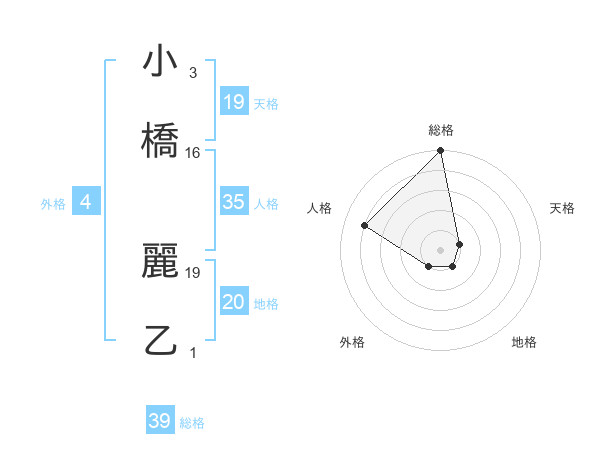 小橋 麗乙さんを姓名の画数から五運を鑑定