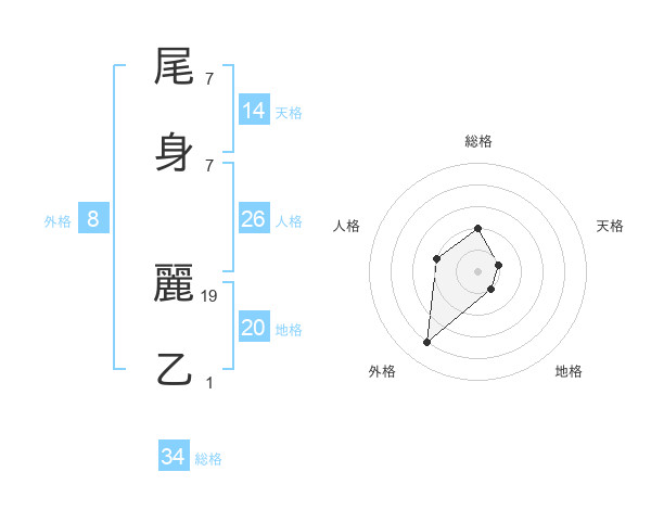 尾身 麗乙さんの天格は14画の1点!