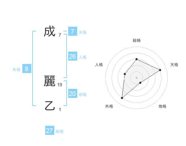 成 麗乙さんの地格は20画の1点!