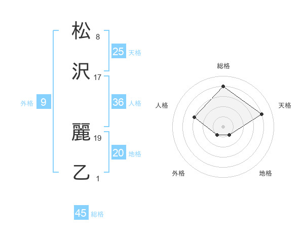 松沢 麗乙さんを姓名の画数から五運を鑑定