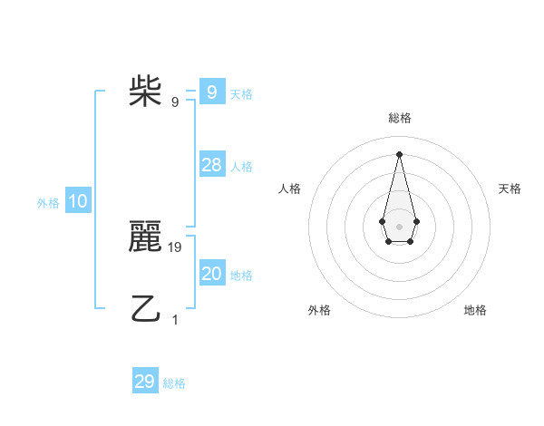 柴 麗乙さんを姓名の画数から五運を鑑定