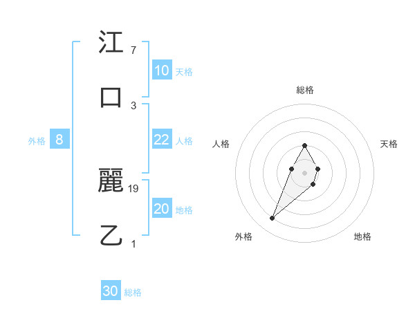 江口 麗乙さんを姓名の画数から五運を鑑定