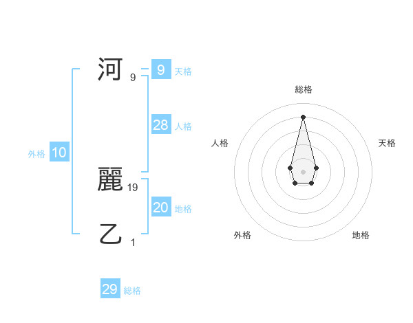 河 麗乙さんの総格は29画の4点!