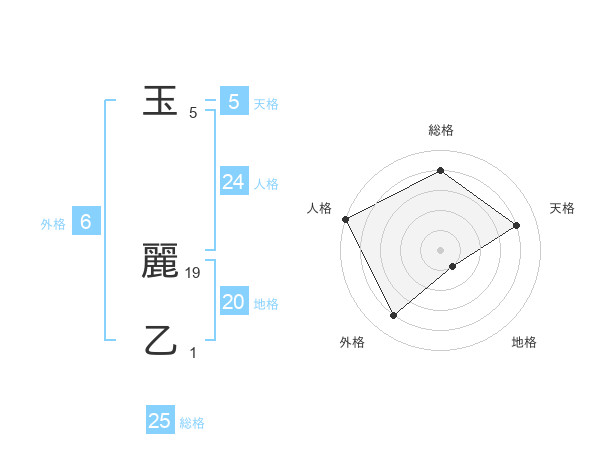 玉 麗乙さんの総格は25画の4点!