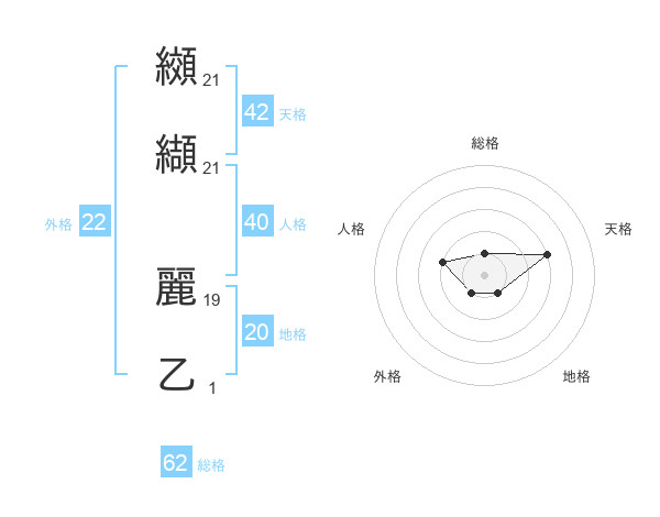 纐纈 麗乙さんの外格は22画の1点!