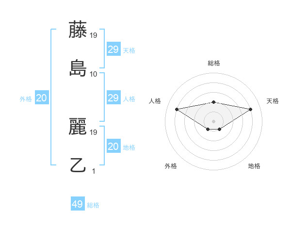 藤島 麗乙さんの総格は49画の2点