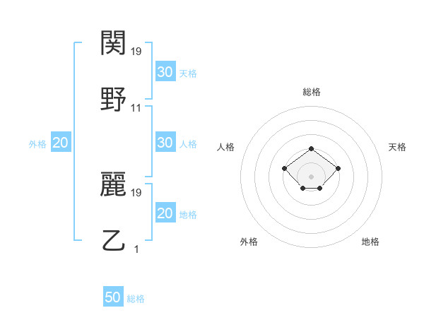 関野 麗乙さんの総格は50画の2点