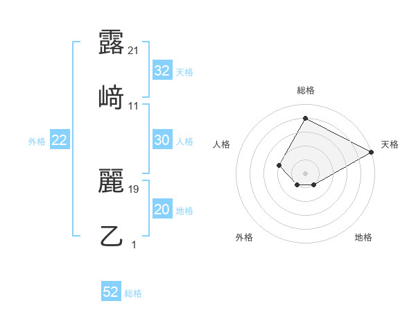 露﨑 麗乙さんの総格は52画の4点!
