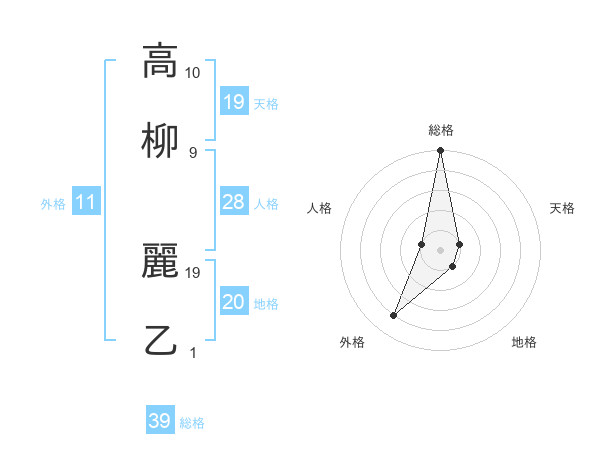 高柳 麗乙さんの総格は39画の5点!