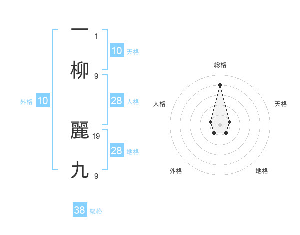 一柳 麗九さんの総格は38画の4点!