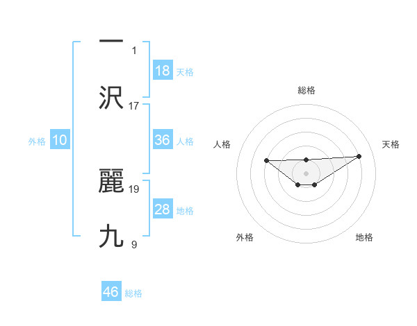 一沢 麗九さんを姓名の画数から五運を鑑定