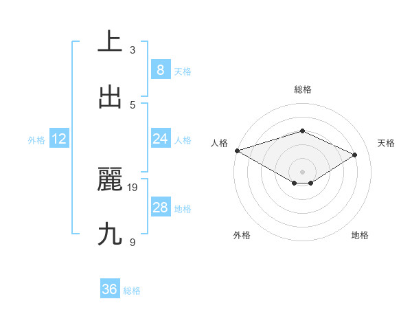 上出 麗九さんの総格は36画の3点!