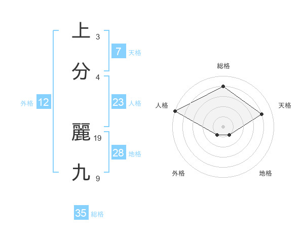上分 麗九さんの総格は35画の4点!