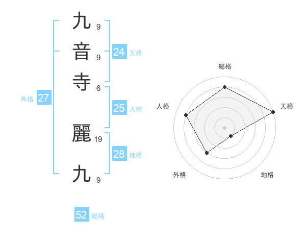 九音寺 麗九さんを姓名の画数から五運を鑑定