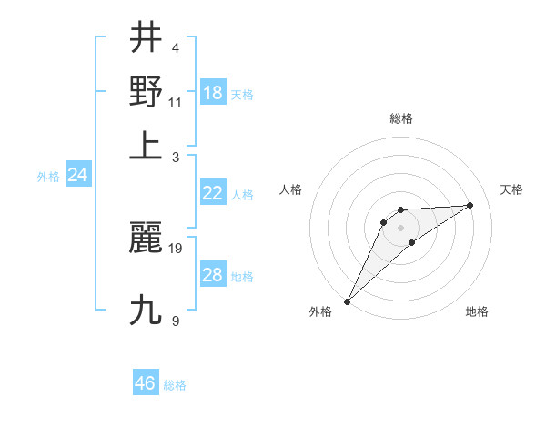 井野上 麗九さんを姓名の画数から五運を鑑定