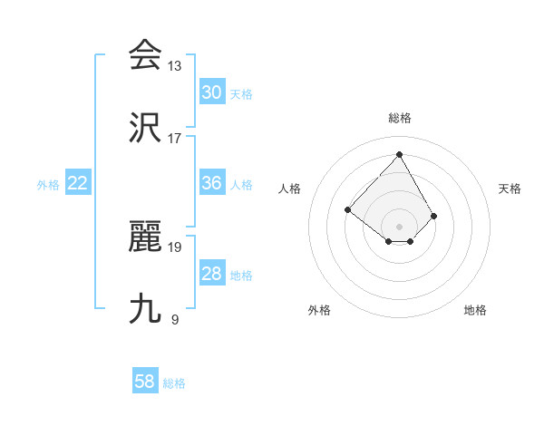 会沢 麗九さんを姓名の画数から五運を鑑定