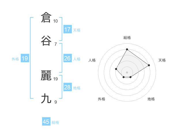 倉谷 麗九さんを姓名の画数から五運を鑑定