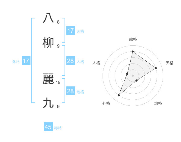 八柳 麗九さんの総格は45画の4点!