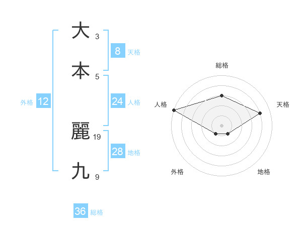 大本 麗九さんの天格は8画の4点!