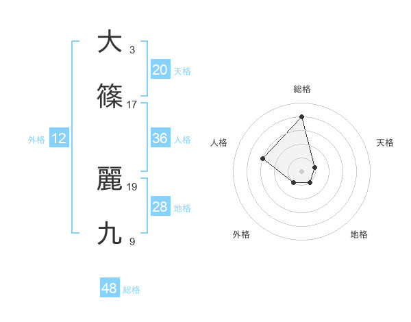 大篠 麗九さんを姓名の画数から五運を鑑定