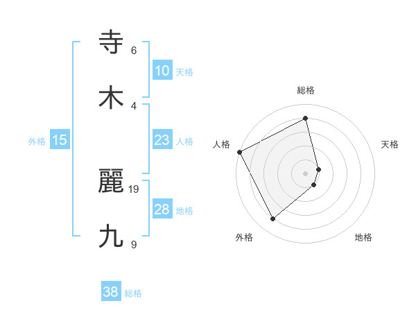 寺木 麗九さんの総格は38画の4点!