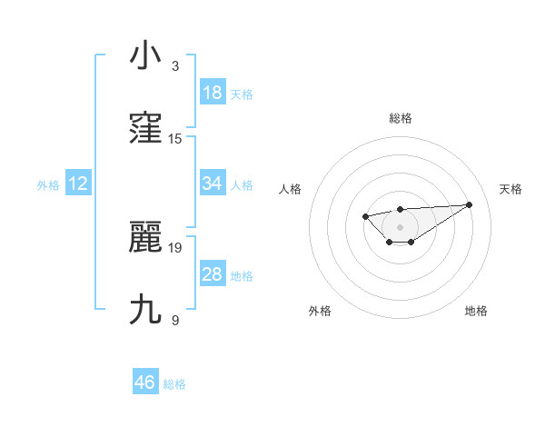 小窪 麗九さんを姓名の画数から五運を鑑定