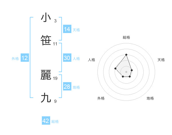 小笹 麗九さんを姓名の画数から五運を鑑定