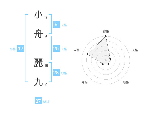 小舟 麗九さんの総格は37画の5点!