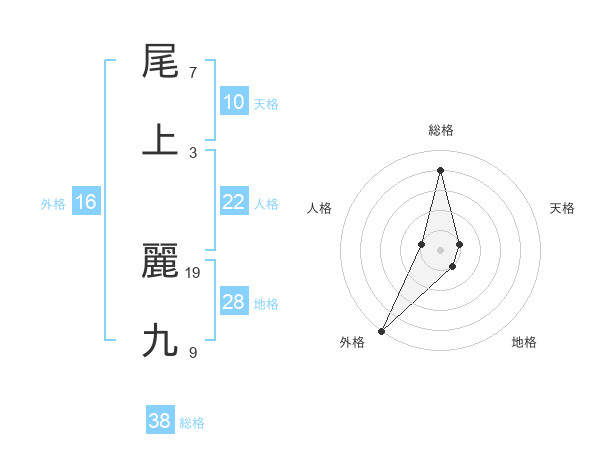 尾上 麗九さんの総格は38画の4点!