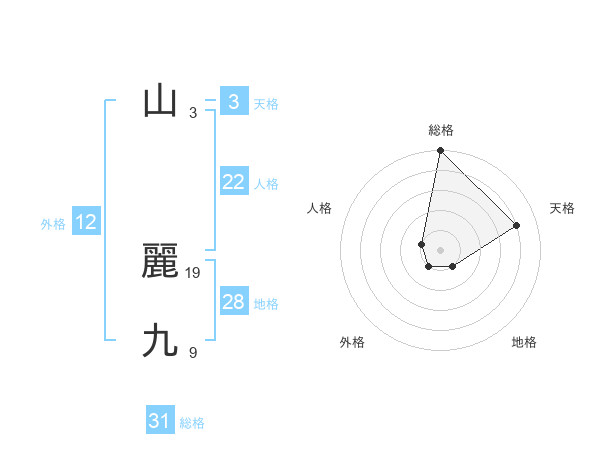 山 麗九さんの総格は31画の5点!