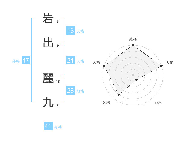岩出 麗九さんを姓名の画数から五運を鑑定